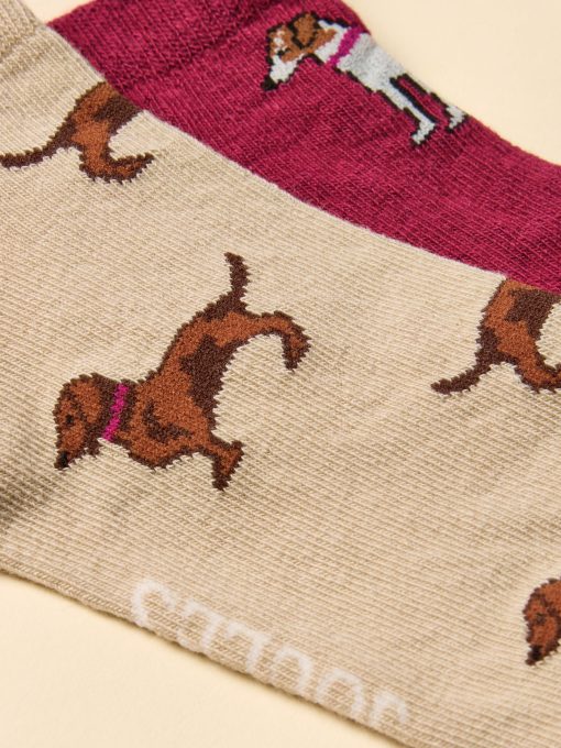 Joules Women’s Rilla Berry & Ecru Pack Of Two Trainer Socks | Berry & Ecru