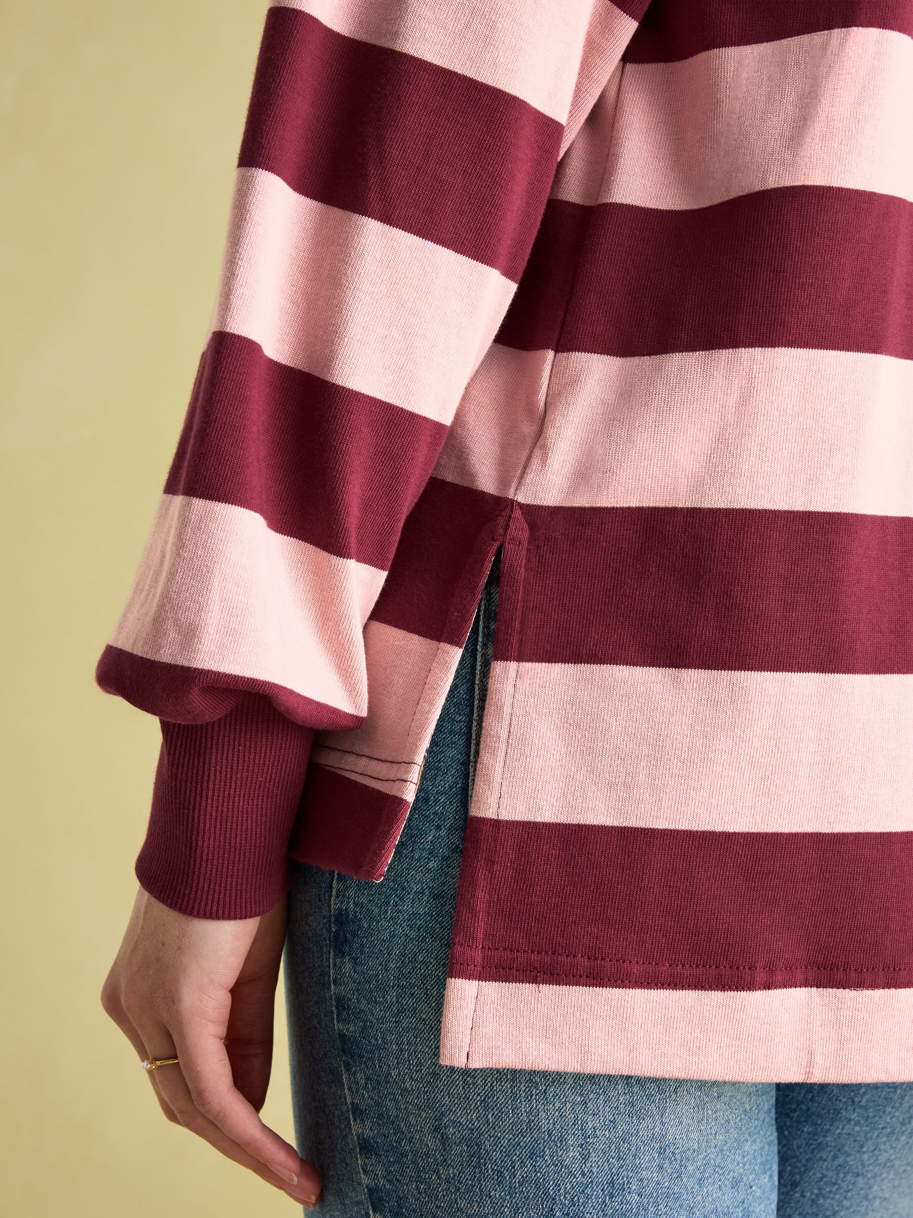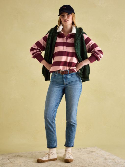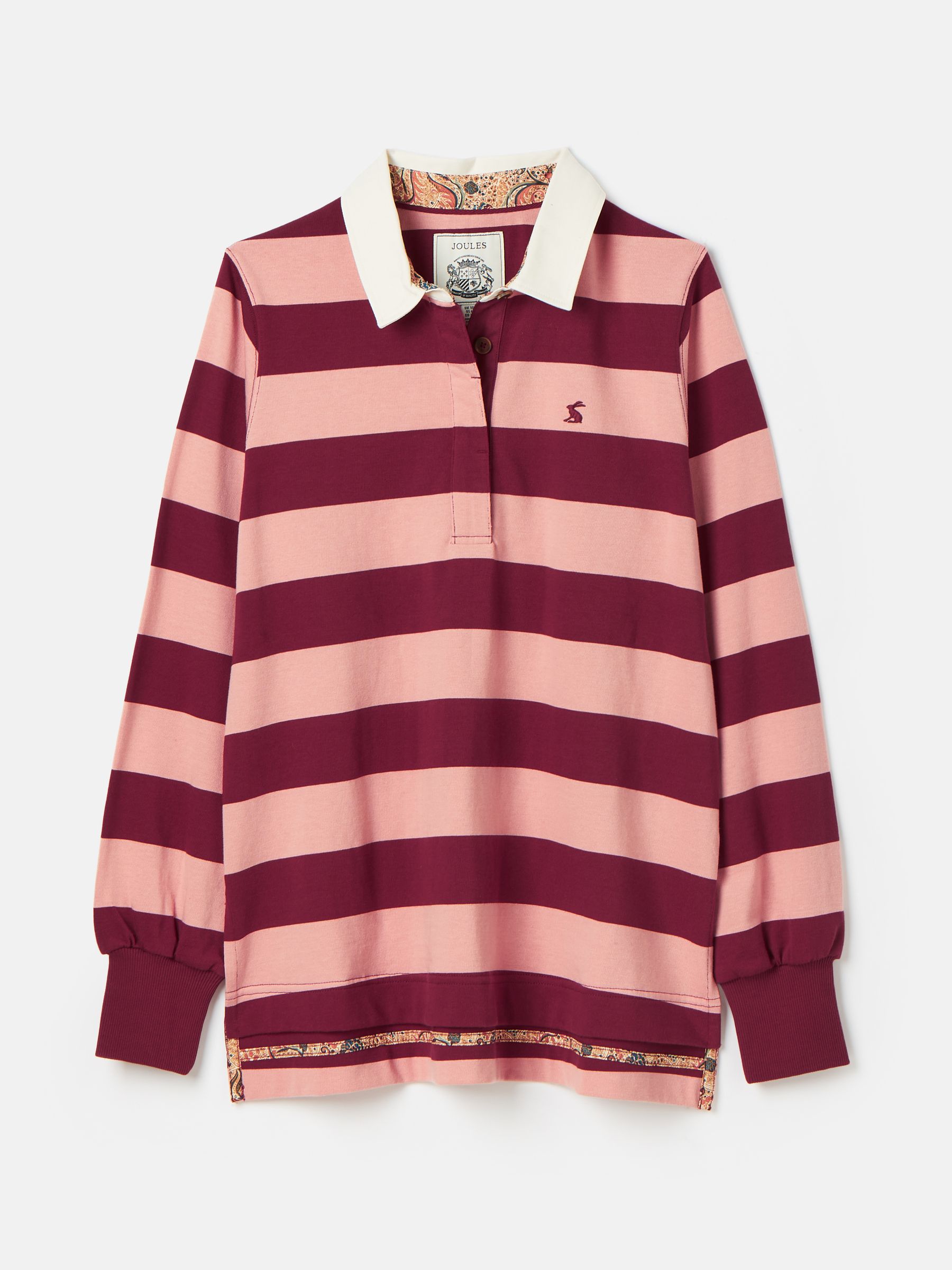 Try as you might, we don't think you'll find a better rugby navy blue shirt than this. Crafted from our finest heavyweight jersey that's perfect for the colder months ahead, this long sleeved shirt features dropped shoulders, deep cuffs, a stylish woven stripe and contrasting printed details to the inside neck, outer collar and inner back hem. The front fastens with concealed buttons and has an embroidered Joules hare to the chest. Cotton Dropped shoulders Concealed button placket Deep ribbed cuffs Dropped hem Embroidered Joules hare to the chest Contrasting print to inside neck, undercollar and internal back hem