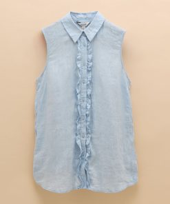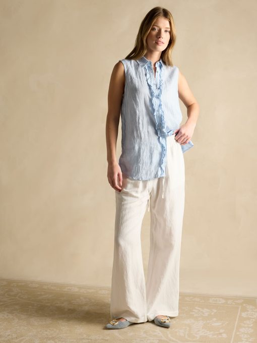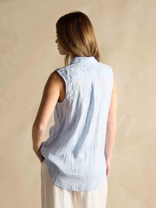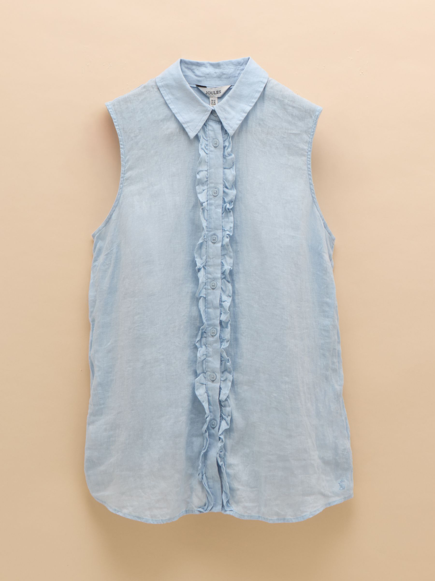 Joules Women’s Selene Blue 100% Linen Sleeveless Shirt | Blue