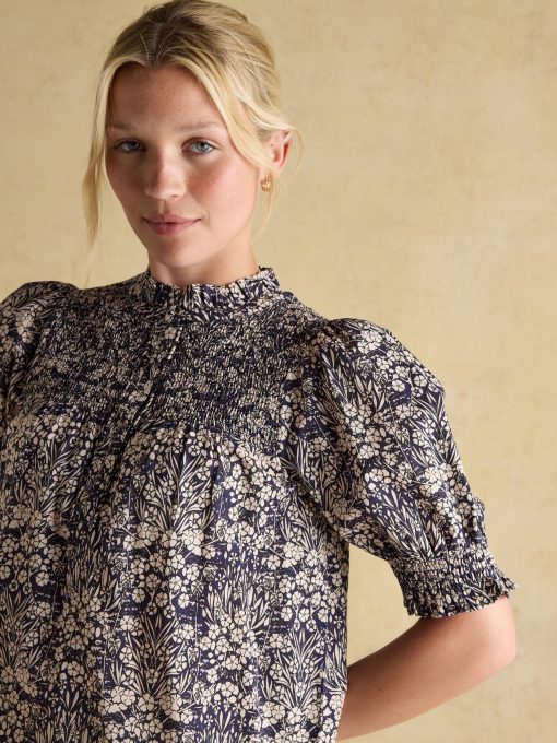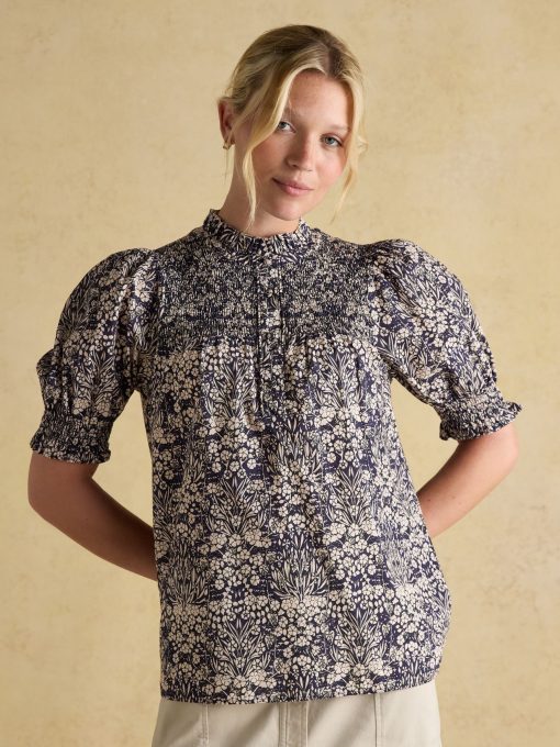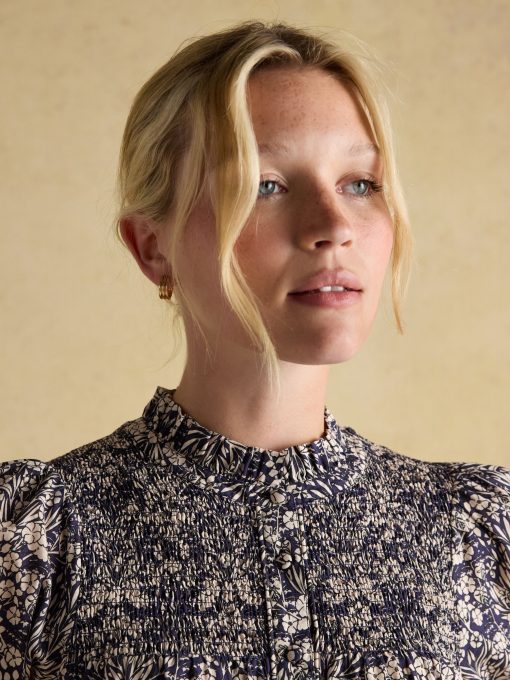 Meticulously crafted from cotton, our Silvia blouse is a sophisticated style that's bound to lift your wardrobe choices. Cut to a regular fit, it features mid-length sleeves with smocked cuffs and is detailed with a smocked front . The neckline is beautifully crowned with frilly trims that add a touch of femininity and it's fastened by buttons that cascade through this artful piece. Cotton Smocked front Mid-length sleeves Smocked cuffs Frilly neck Button fastenings