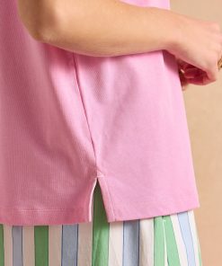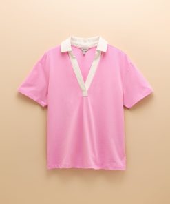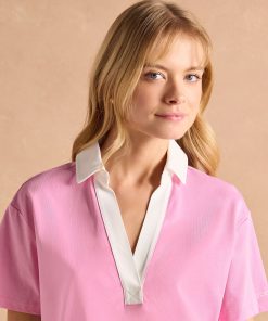 Joules Women’s Tallie Pink Short Sleeve Combed 100% Cotton Collared Top | Pink