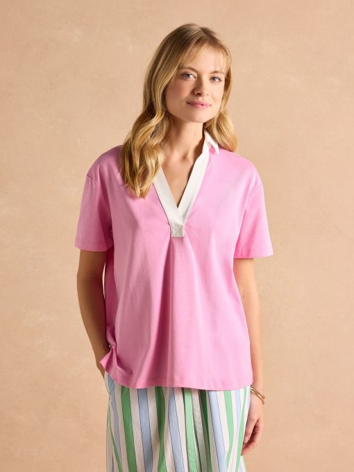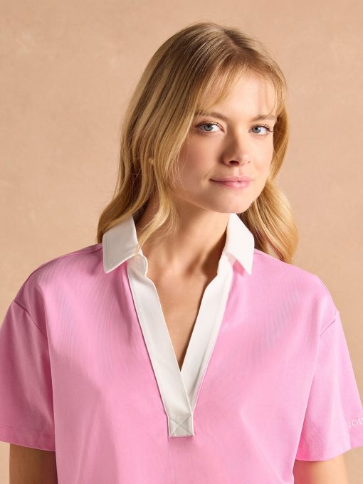 Joules Women’s Tallie Pink Short Sleeve Combed 100% Cotton Collared Top | Pink