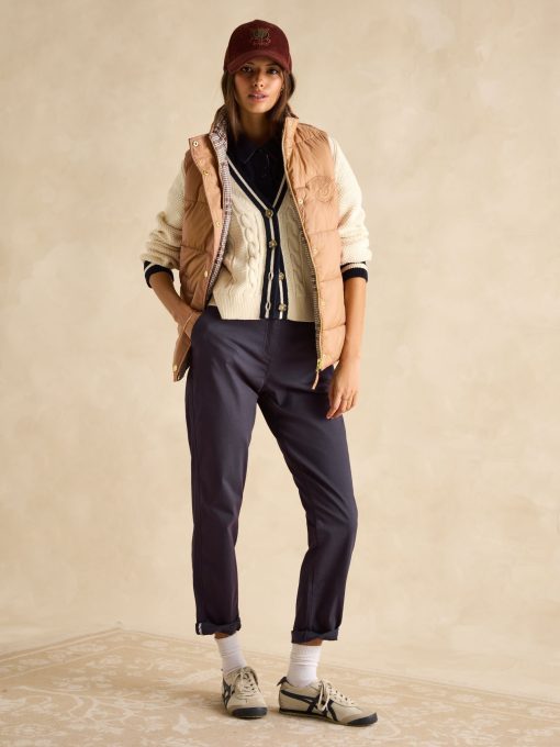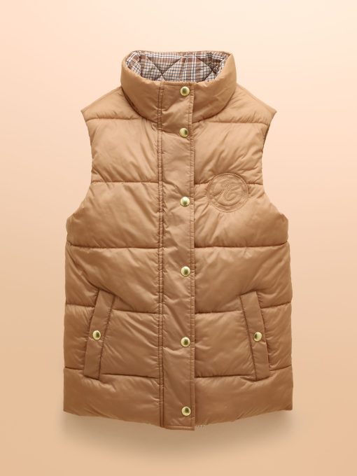 This reversible gilet gives you two different looks in one functional style. The neutral side features barrel padding, a popper fastening, two side pockets with poppers and a Joules branded emblem to the chest. Its reverse showcases a pattern for a contrasting look, has classic diamond quilting and a zip fastening. The flap pockets fasten via double poppers in a different design to the reverse. The perfect way to switch up your style in an instant. Reversible gilet. Neutral side:. Barrel padding. Popper fastening. Slip-in side pockets with popper fastenings. Joules branded emblem to the chest. Patterned side:. Diamond quilting.Zip fastening. Front flap pockets with double popper fastenings.
