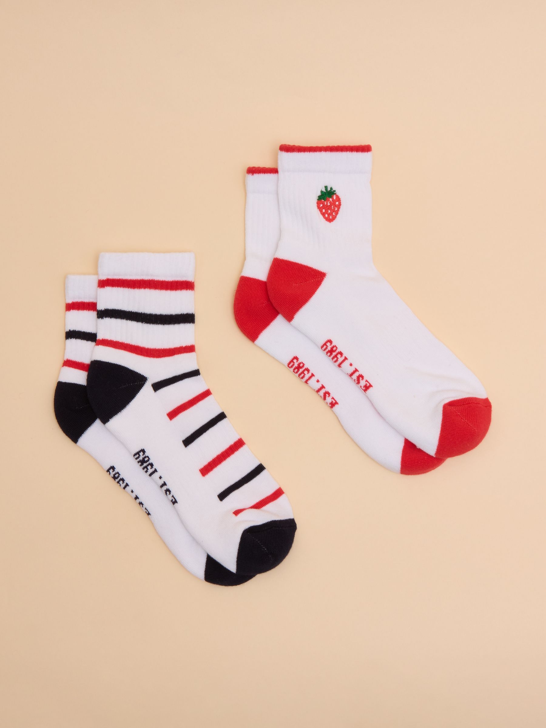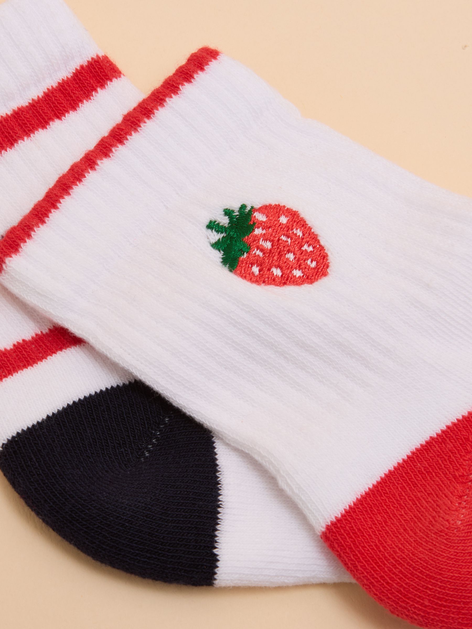 Joules Women’s Volley Cream & Red Strawberry Print Pack Of Two Tennis Socks | Cream & Red Strawberry Print