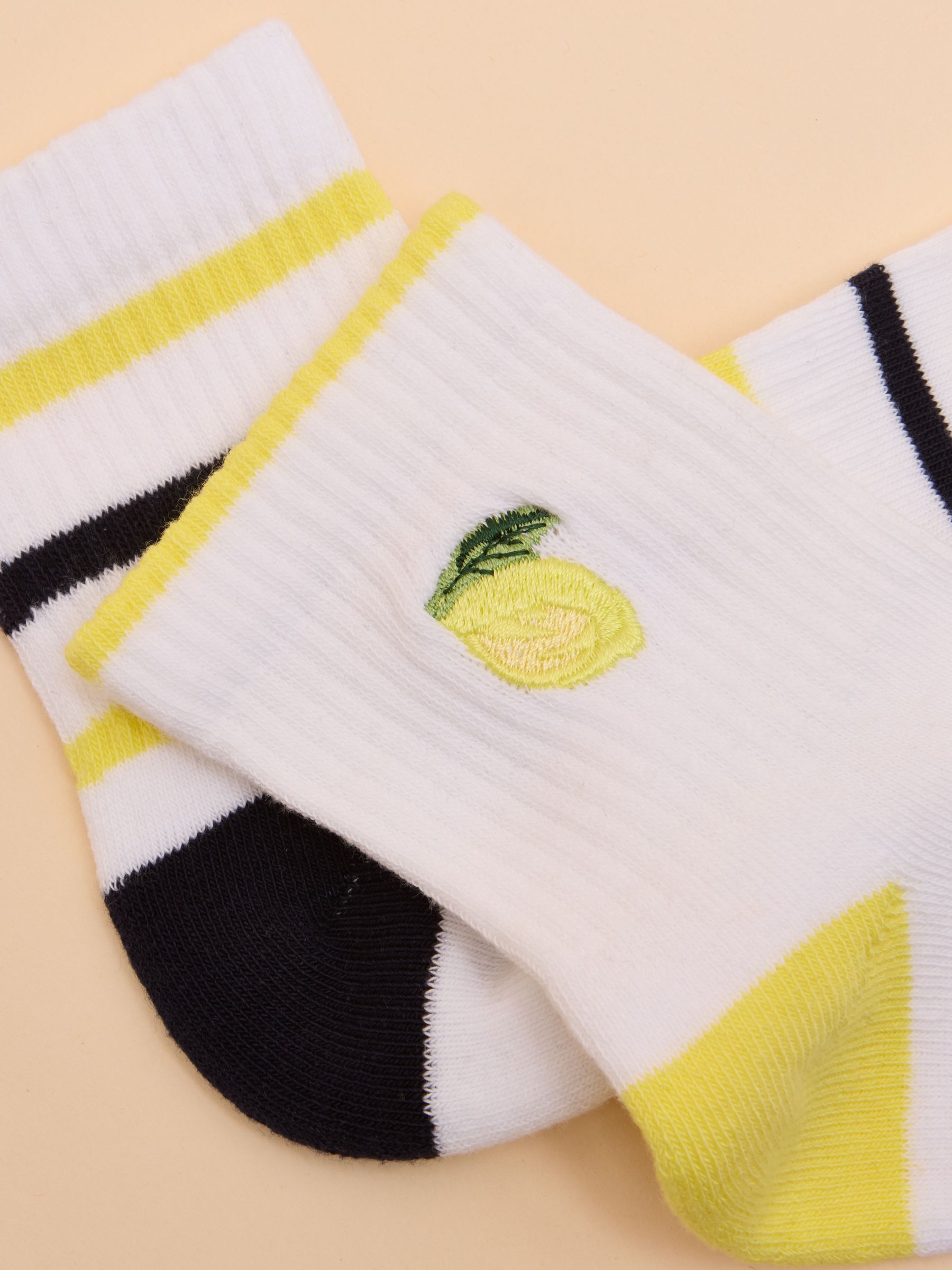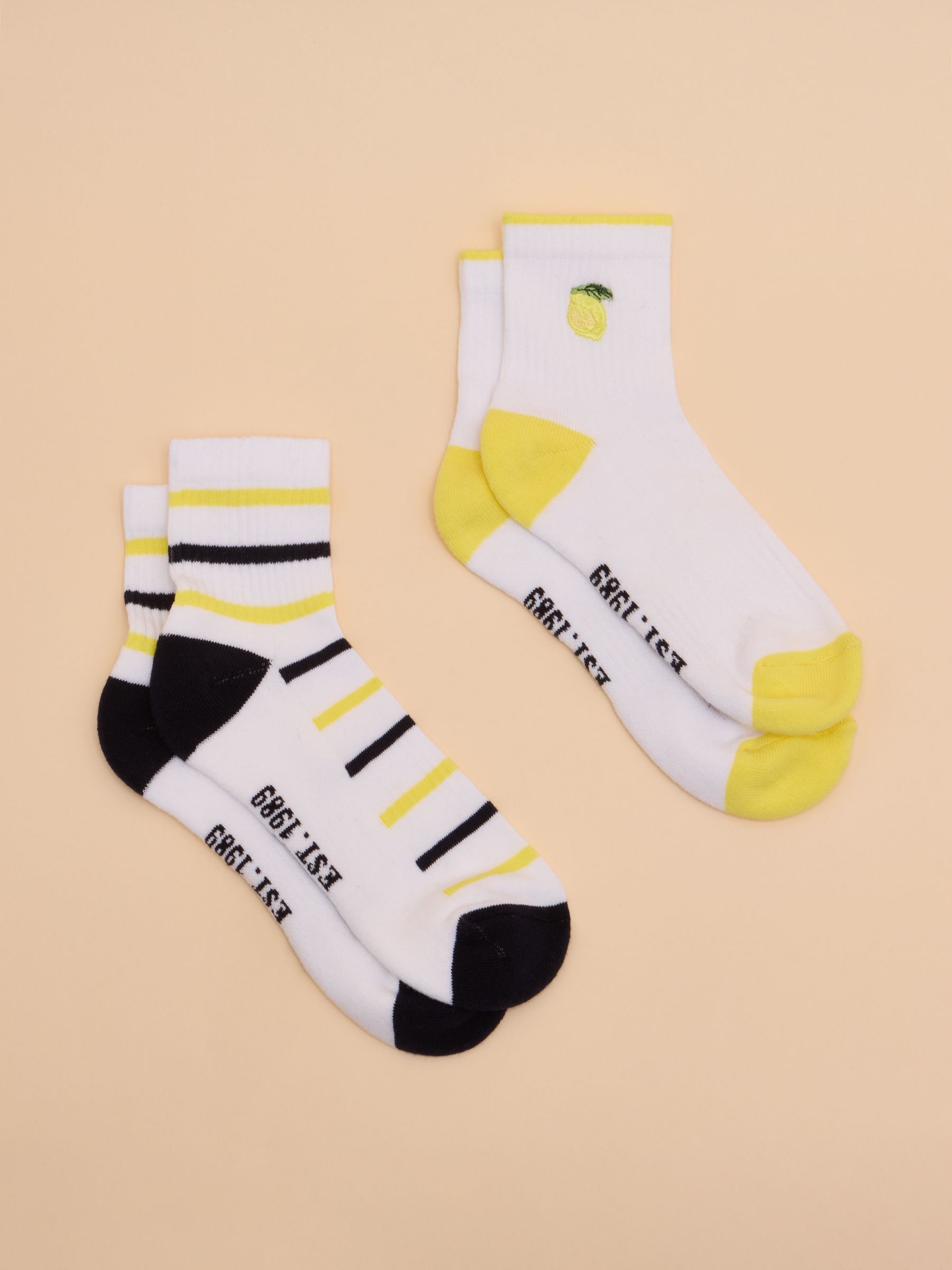 Joules Women’s Volley Cream & Yellow Lemon Print Pack Of Two Tennis Socks | Cream & Yellow Lemon Print