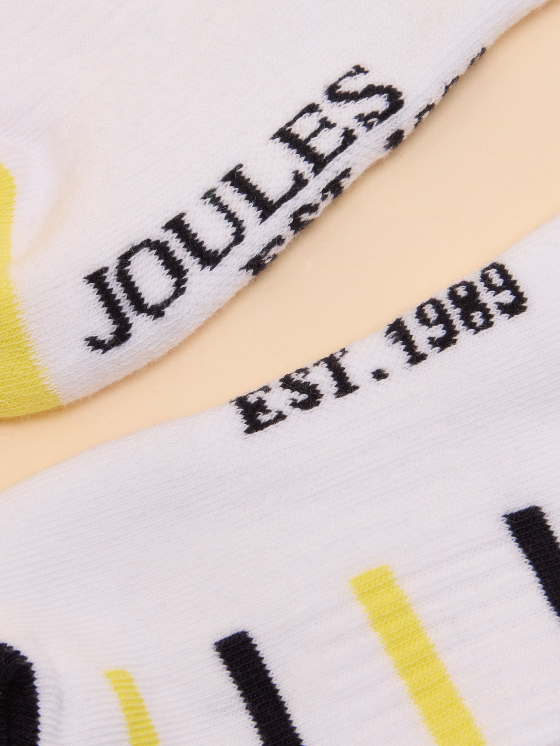 Whether you're hitting the court or simply looking to introduce sporty accessories into your outfits, the Volley socks will be a real winner. In a pack of two, these socks take influence from the world of tennis with their preppy stripes and ribbed cuffs. They're made from a breathable cotton blend and feature a cushioned footbed and heel for comfortable, all-day wear. Each pair is finished with Joules branding on the sole. Breathable cotton blend. Pack of two. Ribbed cuffs for comfort. Cushioned footbed and heel. Joules branding to the sole