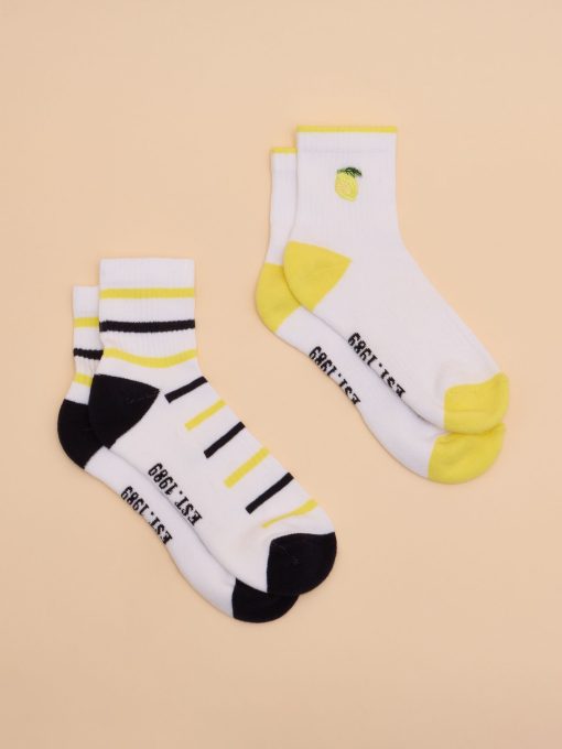 Joules Women’s Volley Cream & Yellow Lemon Print Pack Of Two Tennis Socks | Cream & Yellow Lemon Print