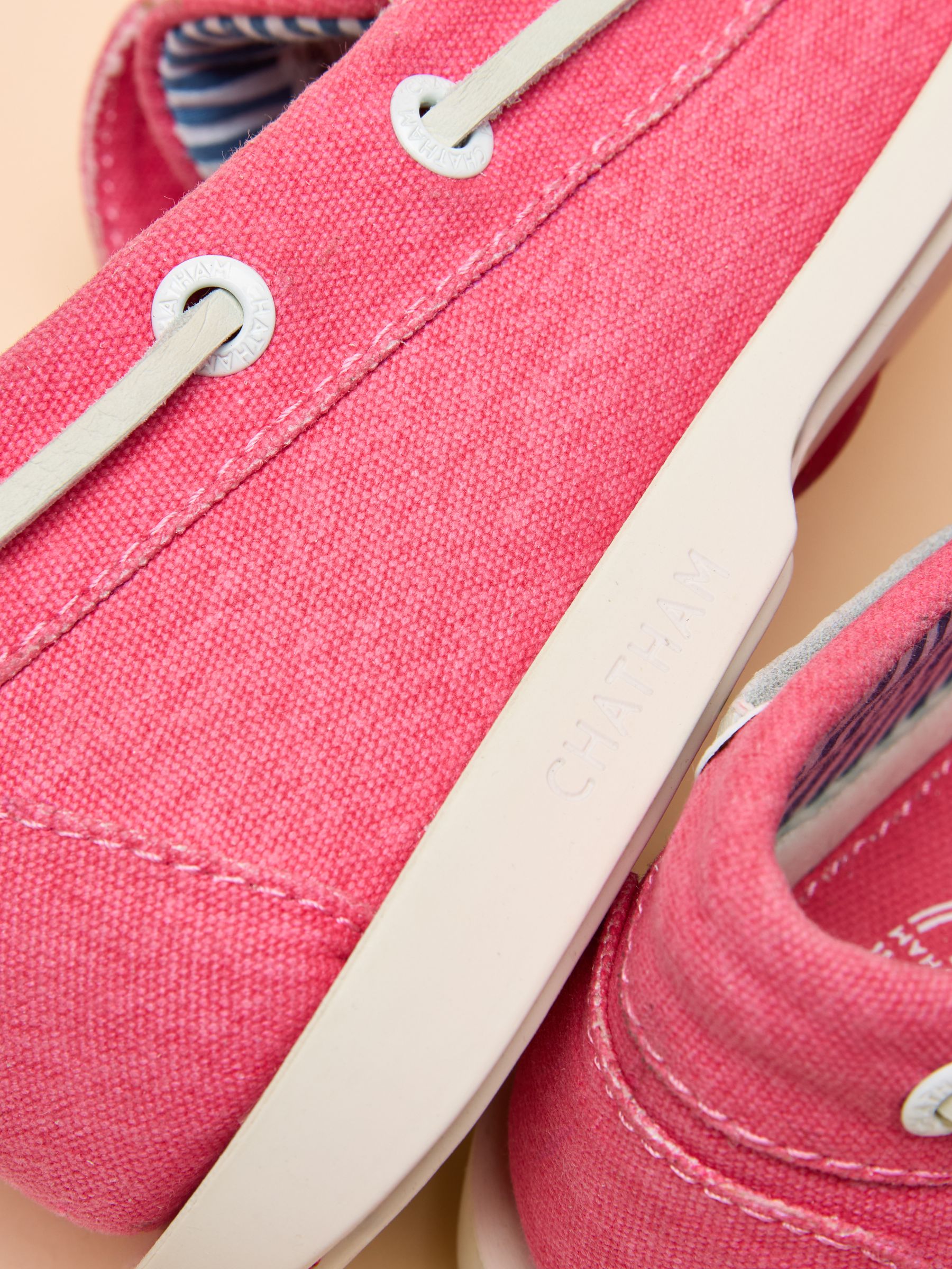 As a fellow brand with both countryside and coastal heritage, we're delighted to have partnered with Chatham – a family-run business that is now one of Britain's key lifestyle footwear brands. Meet the Jetty deck Bright Pink shoes. Perfect boating, beaching, BBQ-ing attire. These classic summer shoes have been crafted from summer-loving canvas, have been stitched by hand, and finished with a dual-branded, unique embossed logo. Made to add a little 'prep' to your step Canvas upper. Full moccasin construction Hand stitched on the last One piece lace